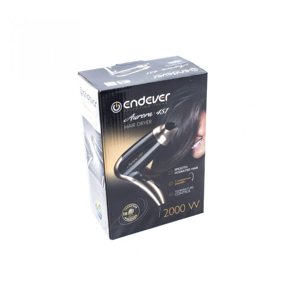 Endever Aurora 451 обладает защитой от перегрева, что гарантирует длительный срок службы. Наличие на корпусе петельки позволяет хранить фен в подвешенном состоянии. Дополнительно он оснащен насадкой-концентратором для бережной сушки.