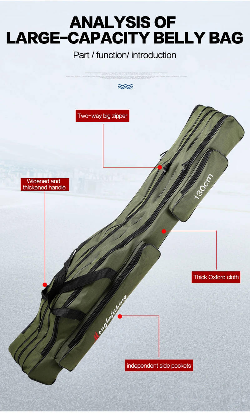 Особенности Изготовлен из полотна, водостойкий и износостойкий, очень прочный. Он содержит два или три основных отделения с боковыми Подсумками. Большая емкость и регулируемые ремни, удобные и портативные. Замечательный спутник для рыболовов. Технические характеристики Материал: холст 1280D Цвет: зеленый/синий (опционально) Слой: два/три (необязательно) Длина: 110 см/120 см/130 см/150 см (дополнительно) Посылка тация: 1 шт. * сумка для рыбалки
