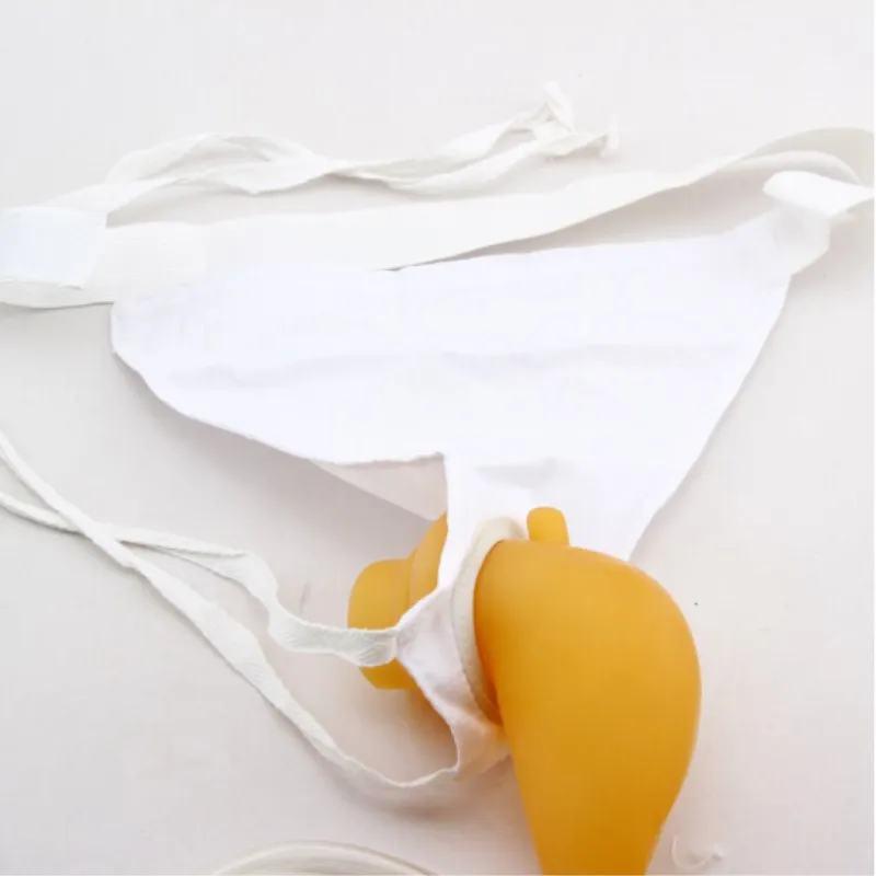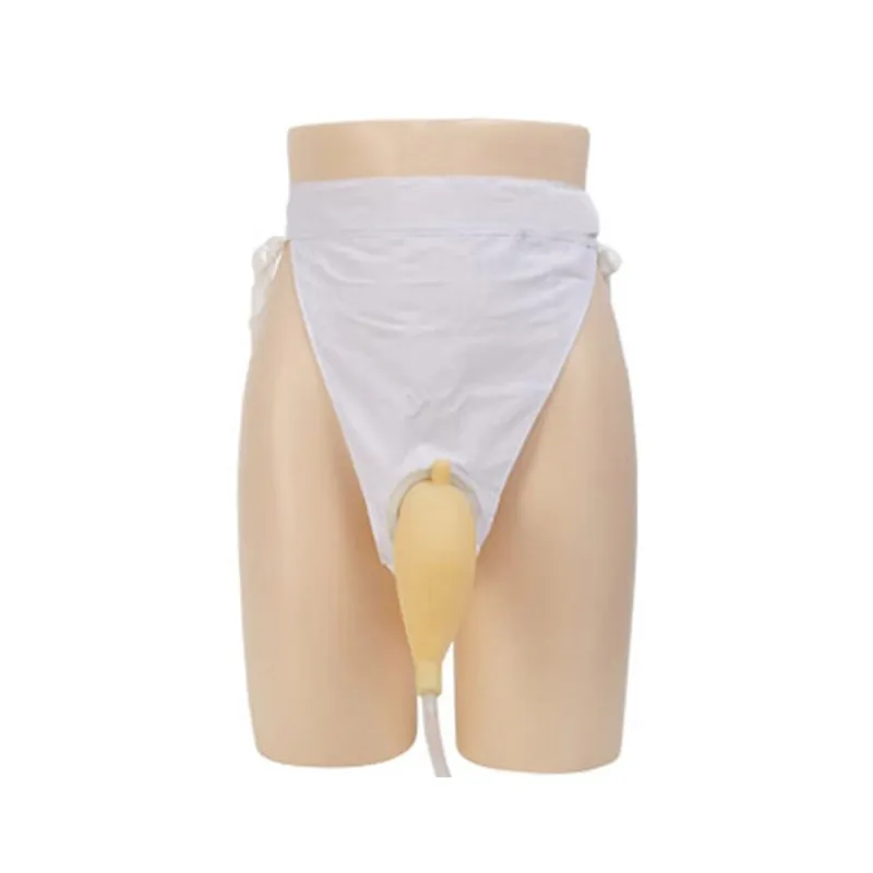 2. Прикрепите ремень к талии. Треугольная ткань, прилипающая к животу. Положите пенис в писсуар.