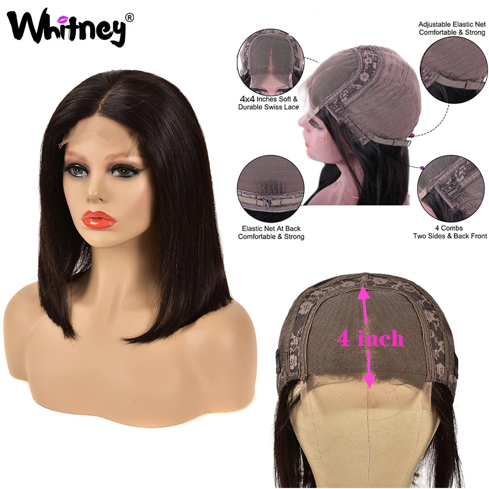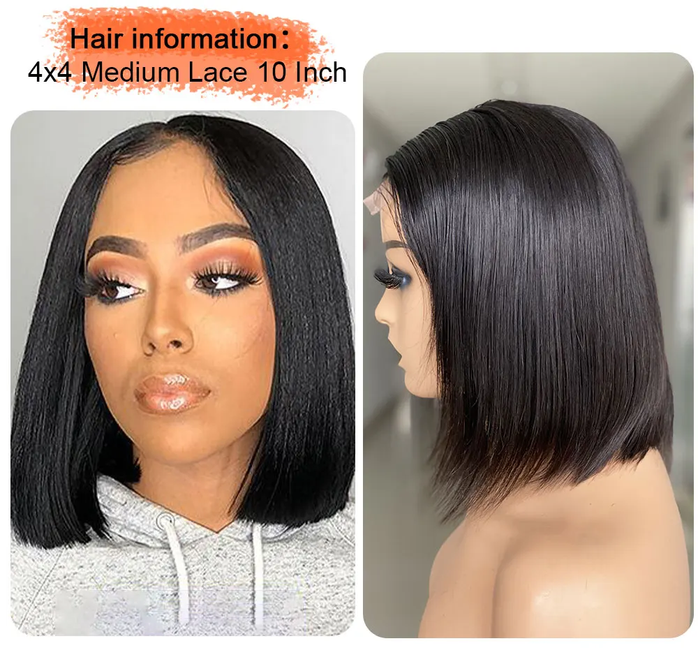 Brazilian Straight Human Hair Bob Wig 4x4 Lace Closure Wig 100% Virgian Human Hair Bone Straight Lace Closure Wigs For Women