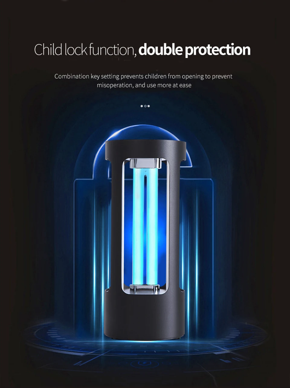 3. Функция блокировки от детей: лампу можно разблокировать после нажатия на кнопку усадки ребенка, чтобы предотвратить неправильную работу детей.