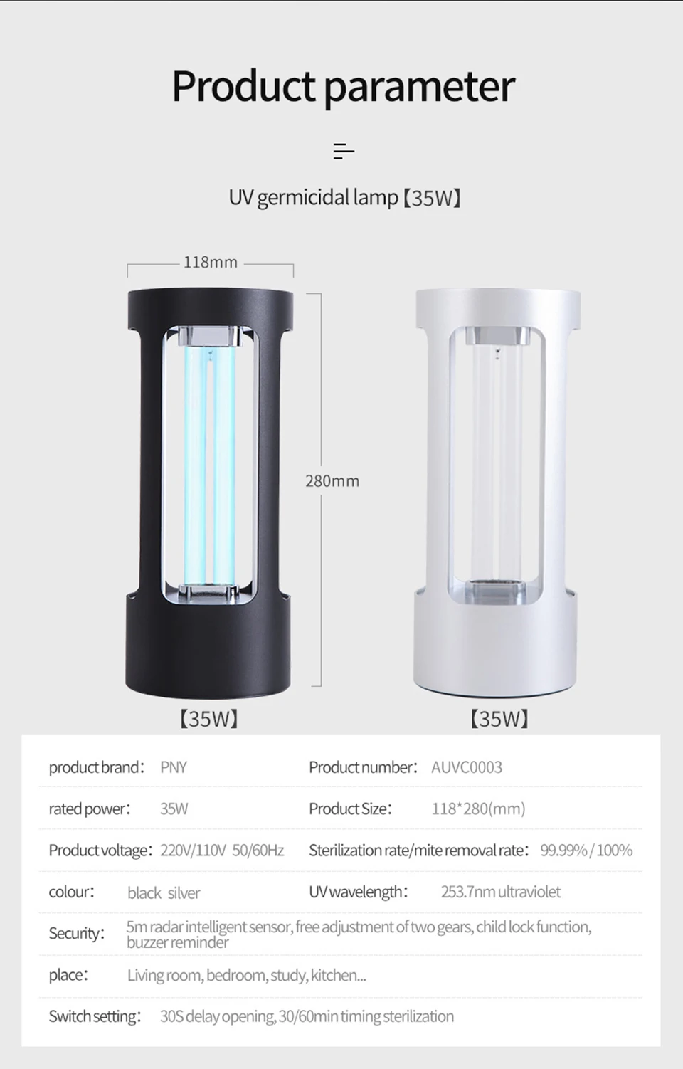2. Функция будильника: когда люди и животные приближаются к УФ-лампе, лампа перестанет работать и издаст звуковой сигнал.