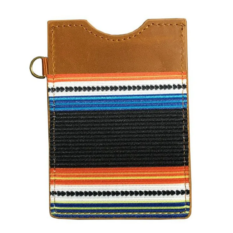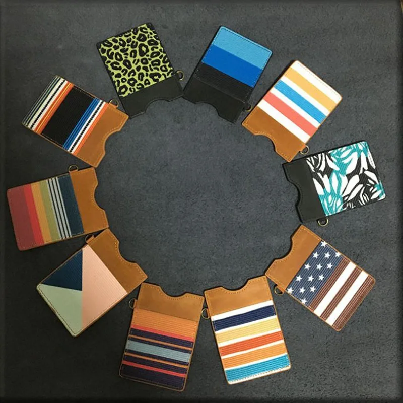 Genuine Cow leather Unisex Printing Slim Purse Bank ID Card Case Credit Card Holder with Key Ring Money Bag Small Elastic Wallet