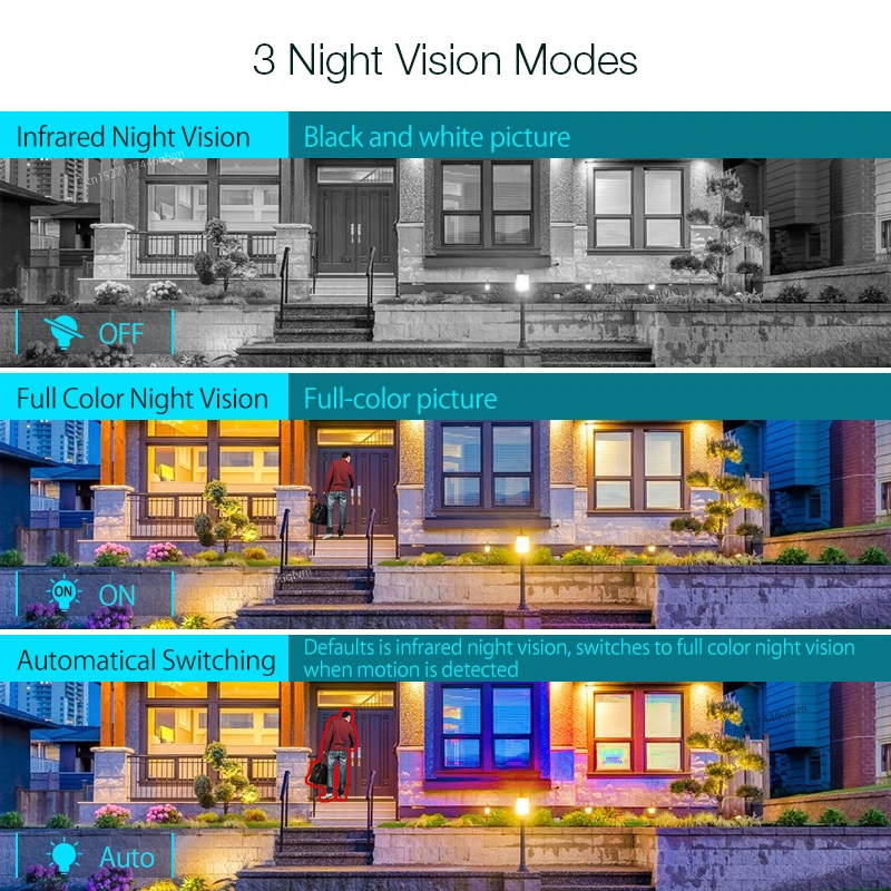 Автоматическое переключение-по умолчанию инфракрасное ночное видение, переключается на полноцветное ночное видение при обнаружении движения