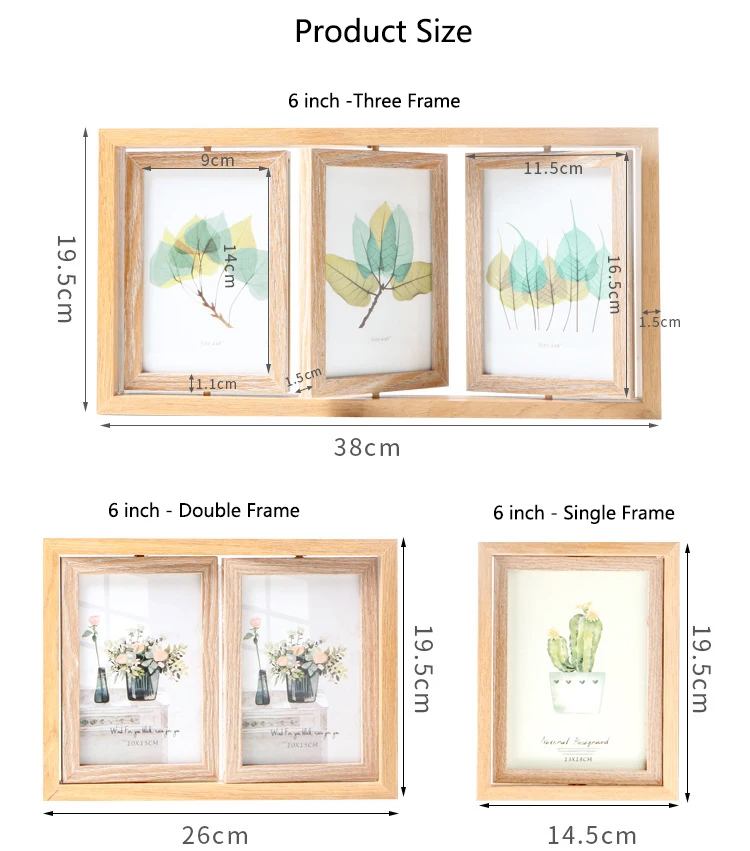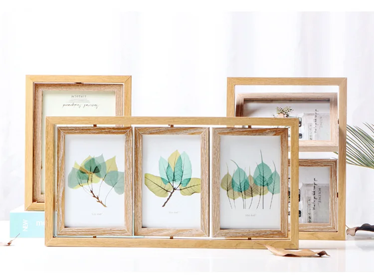 Ретро прямоугольная деревянная фоторамка в скандинавском стиле, вращающийся двусторонний комбинированный рахмен, домашнее украшение