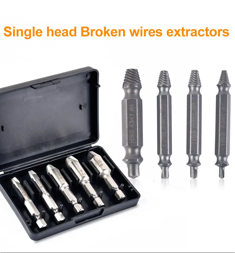 Набор 1: 1 × 4 шт + коробка Набор 2: 1 × 5 шт + коробка Изделие может снять сломанные винты. Сломанные устройство для извлечения проволоки можно использовать в комбинации с электродрелью. Как показано на видео.