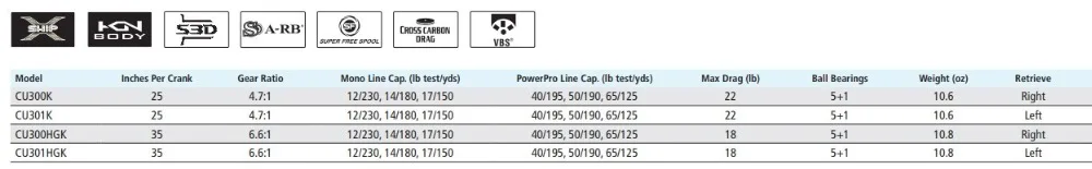 Турнир-жесткое качество и превосходная надежность, Shimano построил Curado 300 для рыболовов, которые не просто гонится за рыбой, но те, кто ориентируется на качество над количеством. Включая глубинную катушку размером 300, предназначенную для тяжелой линии и требуемую емкость для сверхдлинных отливок, curado 300 имеет длинную ручку с широкой рукоятки захвата, чтобы обеспечить рыболовов с дополнительной мощностью, которая необходима при натягивании большой рыбы. В основе Curado 300 лежит жесткий корпус HAGANE, который предотвращает изгибание, когда этот гигант наконец решит совершить. Доступна в двух шестерни-соотношение варианты-это стандартный 4,7: 1 и HG 6,6: 1-Curado 300 позволяет рыбаков, чтобы найти нужный катушка в соответствии с их рыбалка стиль и потребности. Проектированный с питанием в виду, стандартный 4,7: 1 модель тянет двойная пошлина для рыболовов Рыбалка медленнее, методических презентаций, или при ловле рыбы с Алабама установки или magnum воблеры. Передаточное отношение HG 6,6: 1 обеспечивает немного более быстрое извлечение и идеально подходит для рыболовов агрессивно работающих насадок или для быстрого сбора topowater slack. Компания Shimano, созданная для больших рыбных ловушек, создала Curado 300, чтобы выполнять и никогда не спускаться.