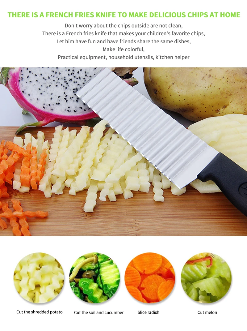 Ломтерезка для картофельных чипсов из нержавеющей стали, волнистая терезка для овощей, фруктов, нож для резки картофеля, измельчитель, инструмент для приготовления картофеля