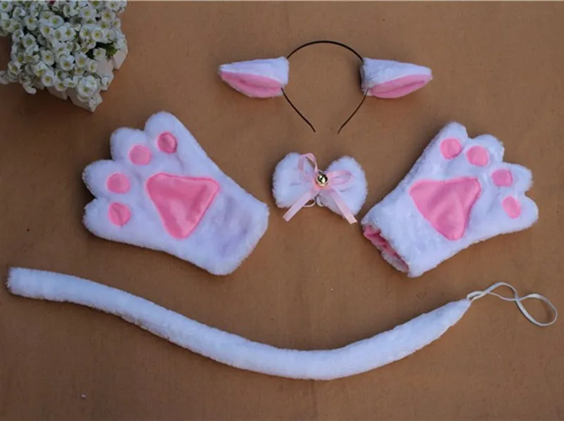 Подходит для детей и взрослых. Галстук-бабочка: 11*9 см, Хвост: Длина 60 см. Перчатки: 24*11 см, подходят для детей и взрослых. Ухо: 6 см