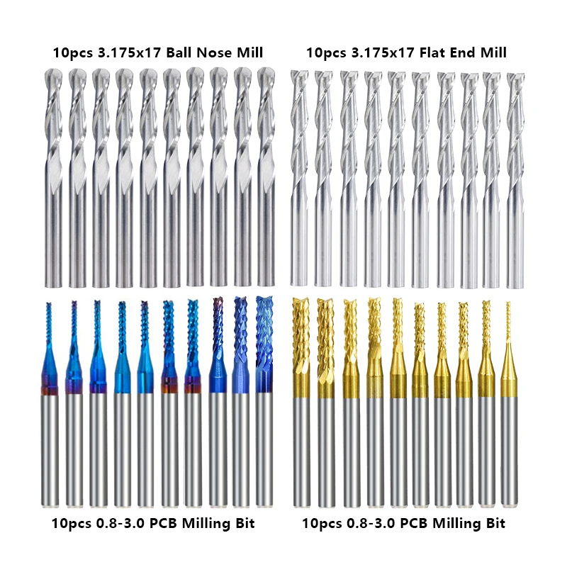 40 шт./компл. шаровая носовая Концевая фреза 2 Флейта плоская Концевая фреза 3,175 мм хвостовик PCB фреза Набор гравировальных бит карбидная Концевая фреза Спецификация:Тип: Концевая мельницаМатериал: карбидХвостовик: 1/8 ''(3,175 мм)Общая длина: как показано на рисункеКомплект включает:10 шт 3,175 мм Диаметр плоская Концевая мельница10 шт 3,175 мм Диаметр шаровой концевой мельницы10 шт. 0,8-3,0 мм фреза для печатных плат с Оловянным покрытием10 шт. 0,8-3,0 мм нано синее покрытие PCB Фрезерный резак Примечание:Допускается ошибка в 1–3 мм из-за измерений вручнуюИз-за разницы между различными мониторами изображение может не отражать фактический цвет изделия. Посылка включает:40 шт. набор гравировальных бит