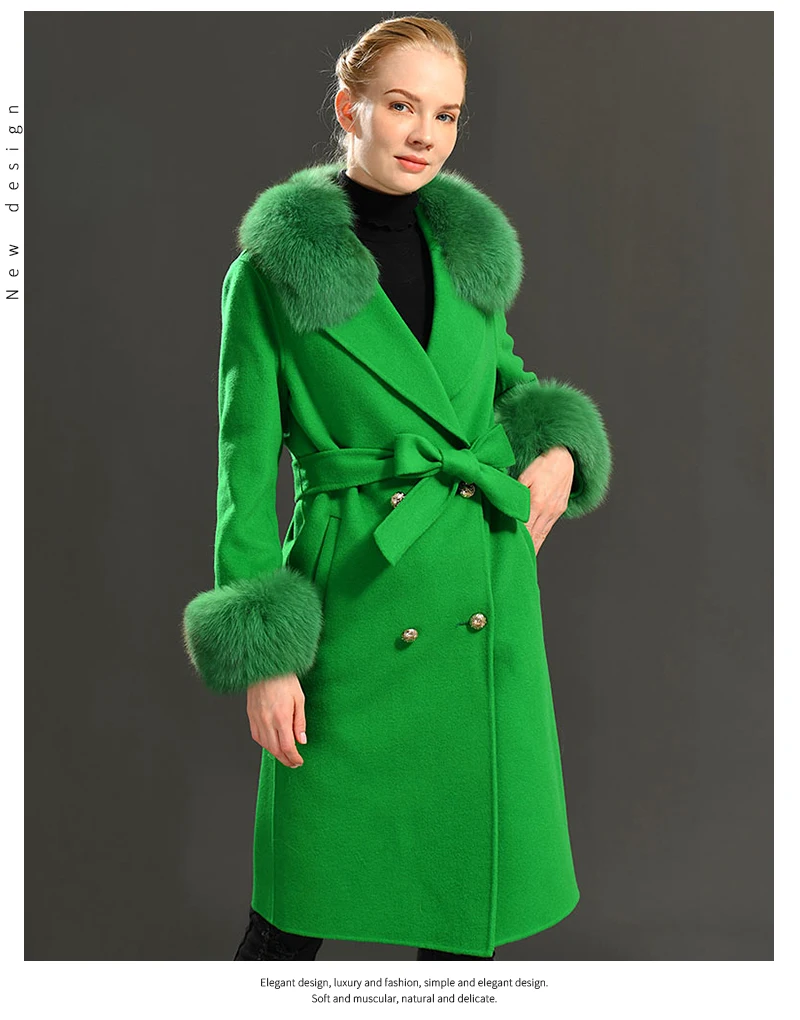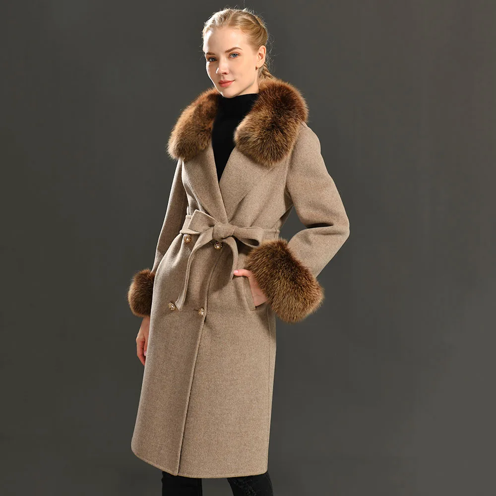 MAOMAOFUR кашемировое шерстяное пальто с воротником из натурального Лисьего меха, пиджак с манжетами с поясом, зимнее осеннее Женское шерстяное пальто