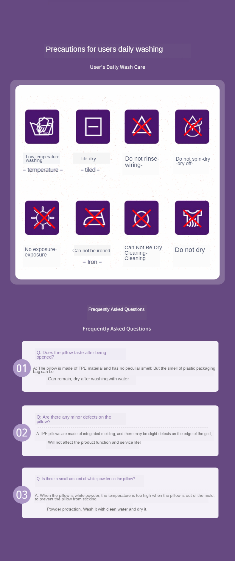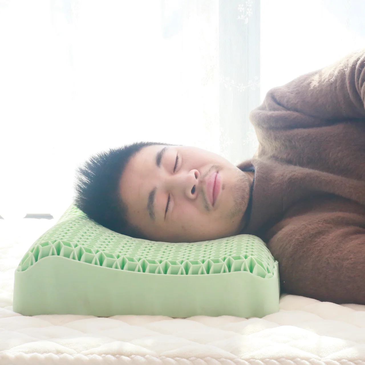 В жизни человека, по крайней мере, четверть времени спит. Сон оказывает положительное влияние на здоровье человека. Однако, если качество сна не высокое, ментальное состояние человека ухудшится и даже ухудшится состояние органов организма. Нагрузка будет влиять на здоровье человека с течением времени. И для тех из нас, у кого головные боли в плечах и шее, легче спать комфортно и полноценно. Поэтому наличие подушки, которая может облегчить боль, даст нам хороший ночной сон и здоровый организм. Качество подушки связано с качеством сна, потому что подушка используется для защиты головы, шеи и плеч во время сна, и в то же время снимает усталость, Поэтому его высота и твердость являются важными. Этот импортный гель ТПЭ-подушка идеально решает эти проблемы. Ромбовидная сетка из ТПЭ имеет отличную эластичность и воздухопроницаемость, обеспечивает динамическую посадку и оснащена изогнутой структурой. Поддерживая голову, она снимает усталость дня и улучшает качество сна. Почти одна третья часть жизни человека находится во сне.
