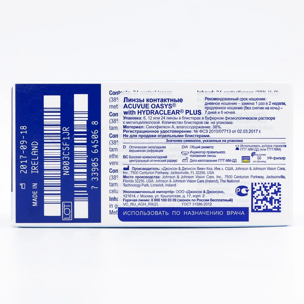 Contact lenses daily replacement, which can provide comfort and prevent eye irritation. There are options for correction of myopia, dalnozornost astigmatism and presbyopia. All contact lens brand Acuvue®Block more than 98% UV-in rays and 85% UV-a Rays. Lacreon technology®Keeps the lens moisturized and can provide comfort from morning to evening.