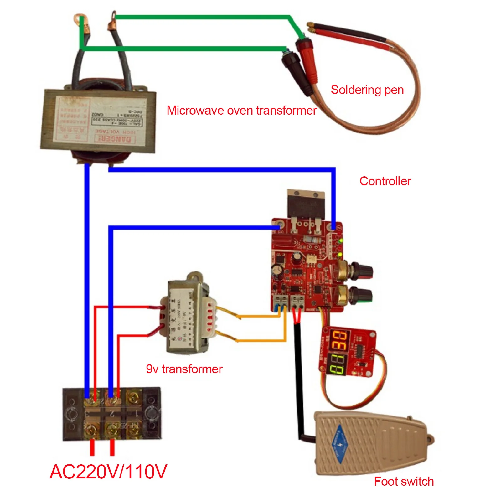 Панель управления точечной сваркой является самостоятельно разработанным контроллером для самостоятельной или простой сварки сопротивлением. Время и ток принимают принцип триггера фазы SCR для достижения цели сварки.