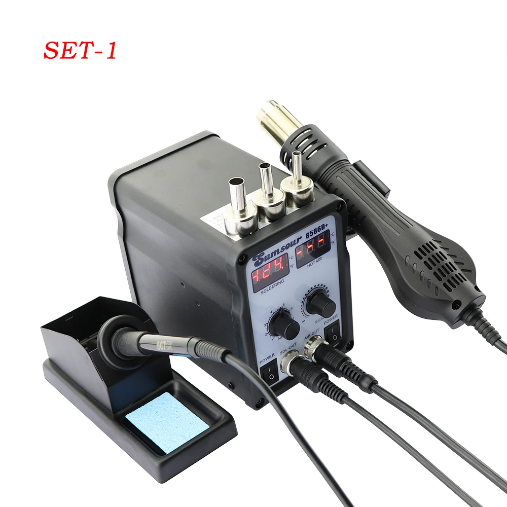 Новинка 8586D + 110/220 В 750 Вт 2 в 1 термостат двойной цифровой дисплей Электрический паяльник Тепловая пушка наладочная станция Набор инструментов