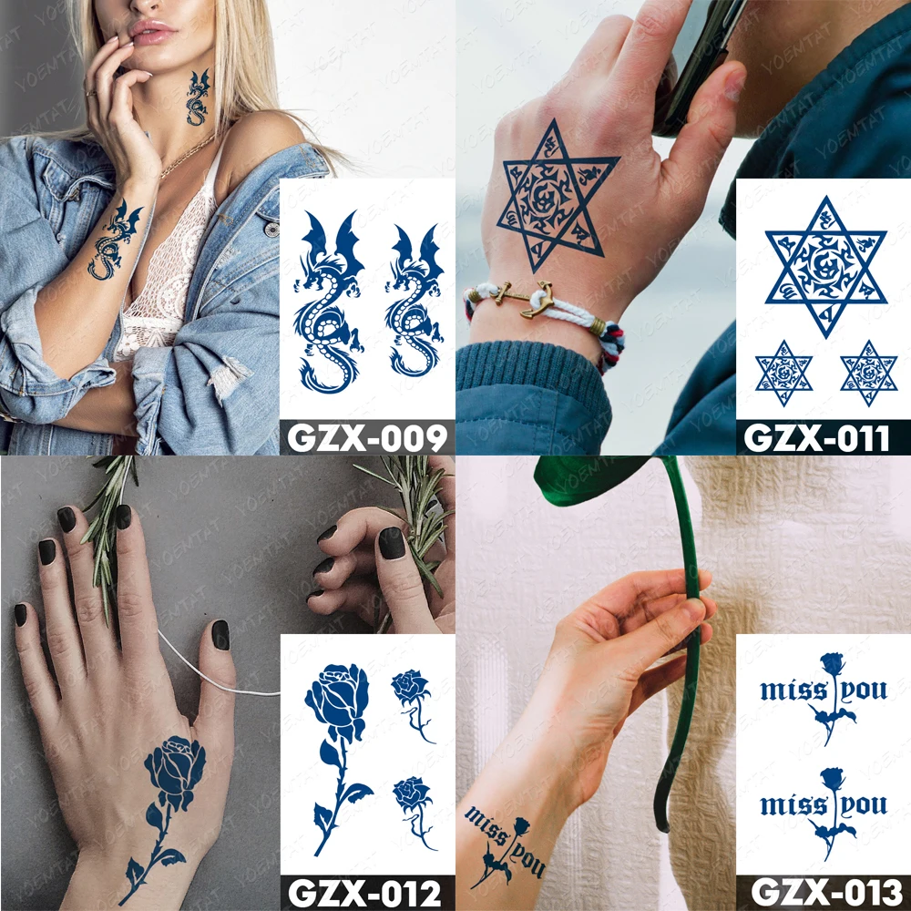 Полупостоянная Татуировка сока Инновационные продукты, сопоставимые с реальными татуировками Принцип окрашивания татуировки сока: Краска для татуировок фруктового сока взята из гардении, растение, которое находится в Китае более 1600 лет и является безопасной природной пищевой краской. Принцип окрашивания: После контакта с кожей, пигмент, активированный окислением, будет выглядеть синим и черным, что также является цветом настоящей татуировки. Не нужно беспокоиться о том, что Временный Дизайн татуировки теряется, Это татуировка сока, которая может длиться в течение двух недель. Новые материалы, отличные цвета и более реалистичные. Спецификация: Количество: 1 Размер: 11x8 см 4.3X3.15 дюймов Примечание: Из-за различных настроек монитора и освещения, цвет может отличаться от реального объекта.