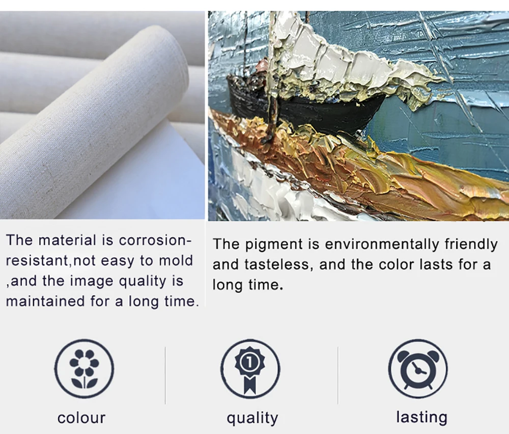 Масло, краска и холст: высокое качество, водонепроницаемость и экологичность.