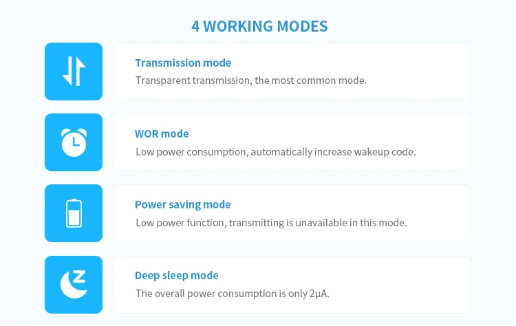 E61-433T30D-это высокоскоростной беспроводной модуль приемопередатчика, работает на частоте 425-450,5 МГц, длина посылка неограничена, когда модуль работает в режиме серийной передачи, которая прекрасно реализует непрерывную передачу для скорости передачи 57600/38400/19200/9600 и так далее.