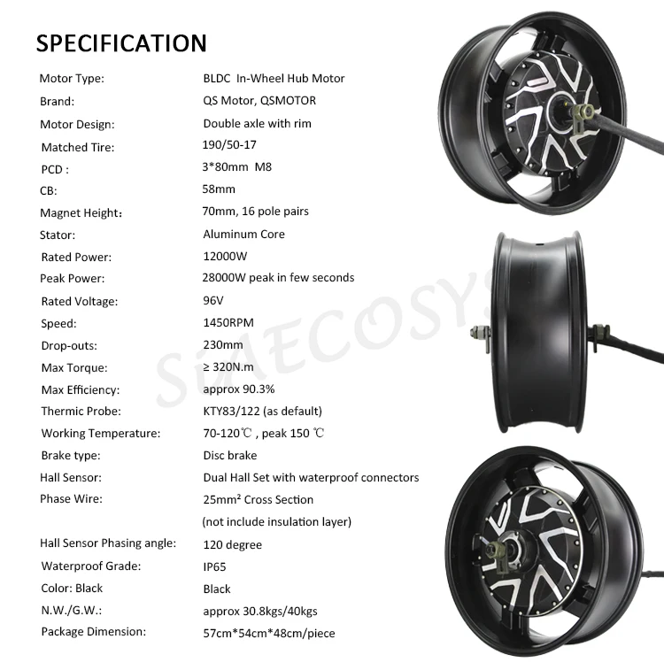 QS двигатель 12 кВт 273 17x6,0 дюймов широкое колесо обод быстрая скорость бесщеточный электродвигатель для электрического мотоцикла