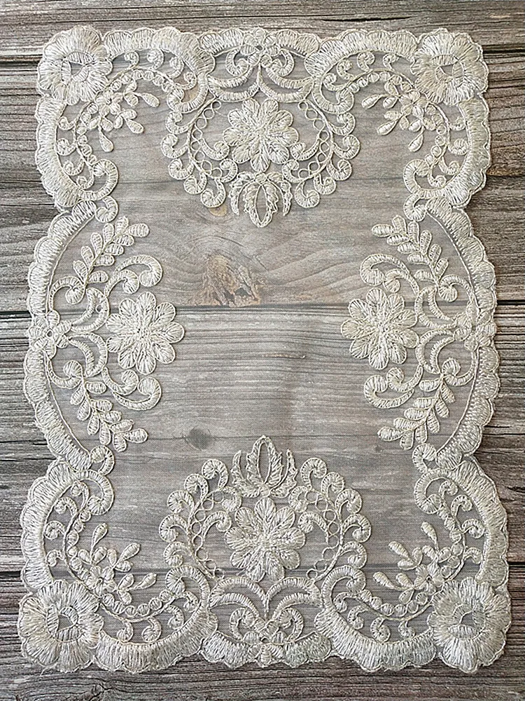 Европейский классический бежевый кружевной вышитый прямоугольный фруктовый десерт чайный столик покрытие полотенце чайный коврик коробка для ювелирных изделий ваза коврик