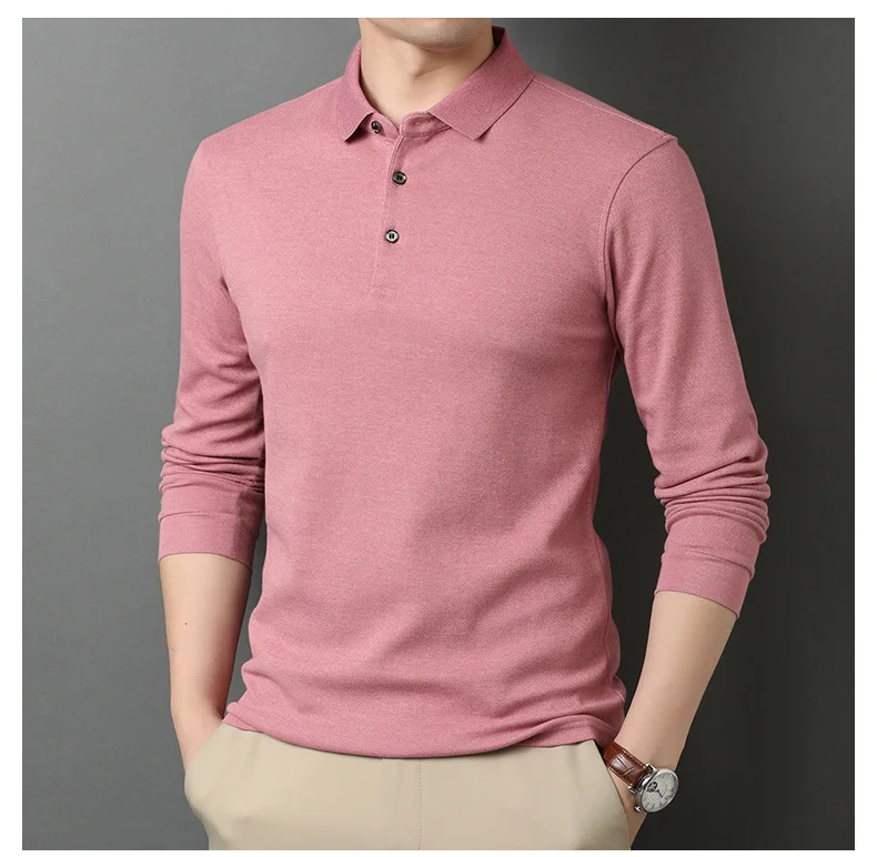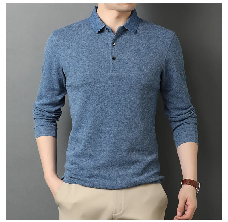 Новая футболка с длинным рукавом, Мужская Осенняя хлопковая свободная приталенная рубашка среднего возраста, деловая повседневная мужская рубашка поло с отворотом, 739
