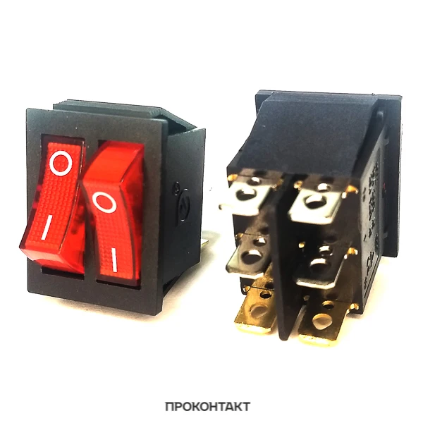 Обратите внимание Стоимость доставки указана за всю посылку, не зависимо от количества данного или любого другого товара из нашего магазина. Переходите по ссылке 'Товары' - вас ждут более 20000 наименований радиодеталей, электронных компонентов, инструмента и расходных материалов для радиолюбителей и профессионалов. Выключатель клавишный 250V 15А (6с) ON-OFF красный с подсветкой ДВОЙНОЙ предназначен для коммутации электрических цепей переменного тока напряжением до 250В. Клавишные (Рокерные) выключатели применяются в качестве комплектующих изделий различного электрооборудования (в сетевых фильтрах и удлинителях, аудио-оборудовании, блоках питания, электроустановках на различных производствах, автомобилях, и многих других местах). Такой клавишный переключатель имеет два положения и две клавиши, что позволит раздельно коммутировать контактные группы. Принцип действия основан на перемещении клавиши в одну из позиций. Для переключения в нужное положение требуется приложить некоторые усилия на клавишу. Монтаж осуществляется без применения винтов на плоских панелях толщиной от 0.8мм до 3мм. Подключение контактов осуществляется плоской клеммой 6.6мм, либо с помощью пайки. Основные характеристики: Номинальное напряжение: 250В; Предельное напряжение: 1500VАС не более 1 минуты; Номинальный ток: 15A (250VAC); Контактное сопротивление: не более 35 мОм; Тип переключения: ON-OFF; Количество контактных групп: 2; Количество контактов в контактной группе: 3; Фиксация положений: да; Индикатор коммутационных положений: красный; Рабочая температура: от -25 до +85; Ресурс: 10 000 циклов.