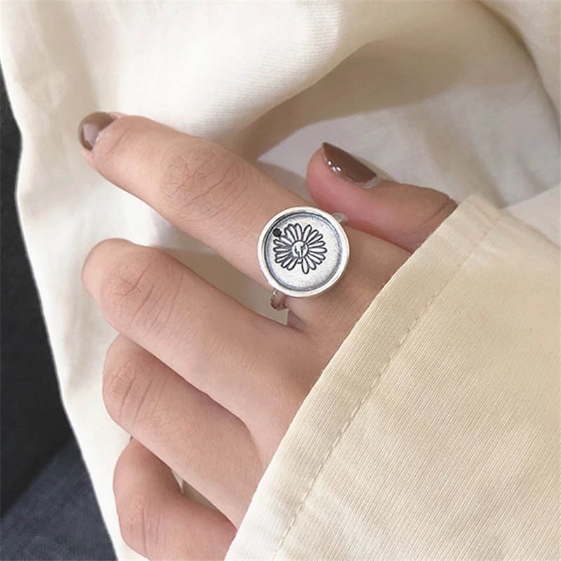 2020 Новое поступление Прямая поставка растение Подсолнух женское кольцо на палец тибетское серебро Ретро Винтажные регулируемые Простые Кольца для женщин