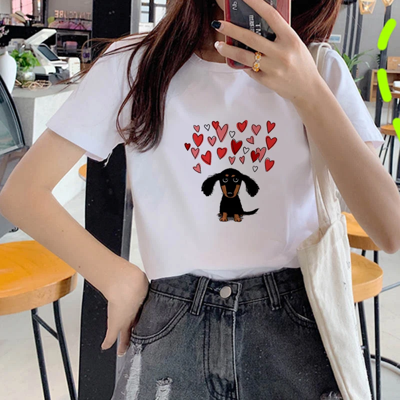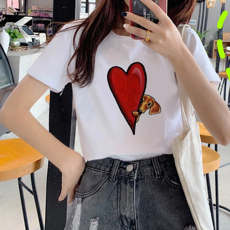 Летняя Милая футболка с изображением колбасы и собаки, женские Забавные топы с графическим принтом, Женская Футболка Harajuku, футболка большого размера для девочек, белые футболки с коротким рукавом