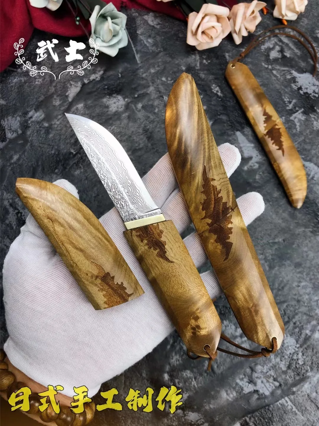 Высокое качество Катана тактический нож деревянной ручкой на открытом воздухе выживания охоты спасения EDC твердость Дамасская сталь Vg10 стальное фиксированное лезвие