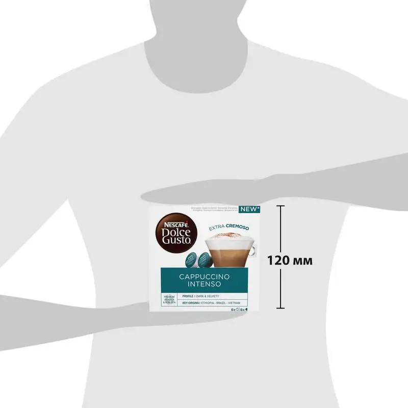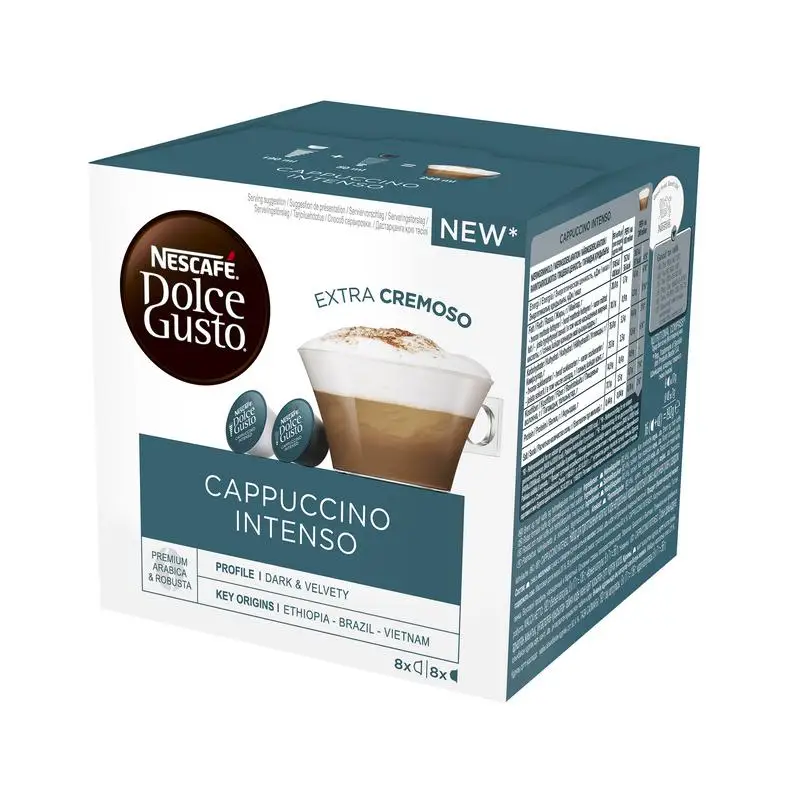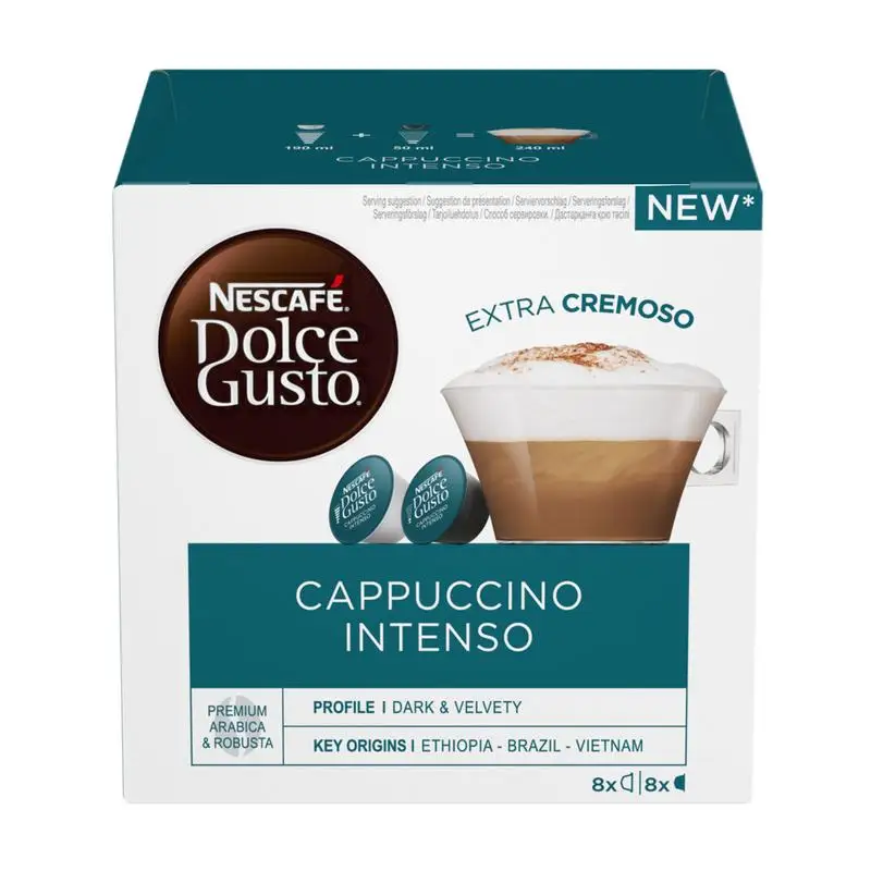 Откройте для себя удивительный Капучино Интенсо от NESCAFE Dolce Gusto - легендарный итальянский кофе, в котором богатый и насыщенный аромат крепкого эспрессо сочетается с нежным сливочным вкусом и чарующей, бархатистой молочной пенкой. Бережная обжарка кофейных зерен создает бархатистую текстуру эспрессо, а нежное молоко помогает сделать вкус кофе более мягким и утонченным.