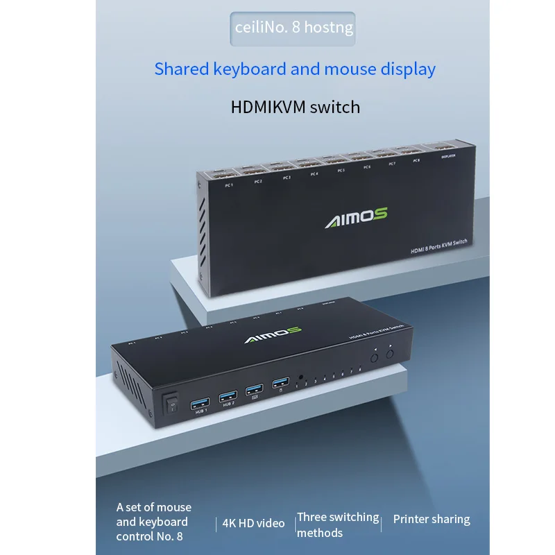 Этот KVM-коммутатор имеет 8 групп источника видео высокой четкости и USB-интерфейс для свободного переключения;