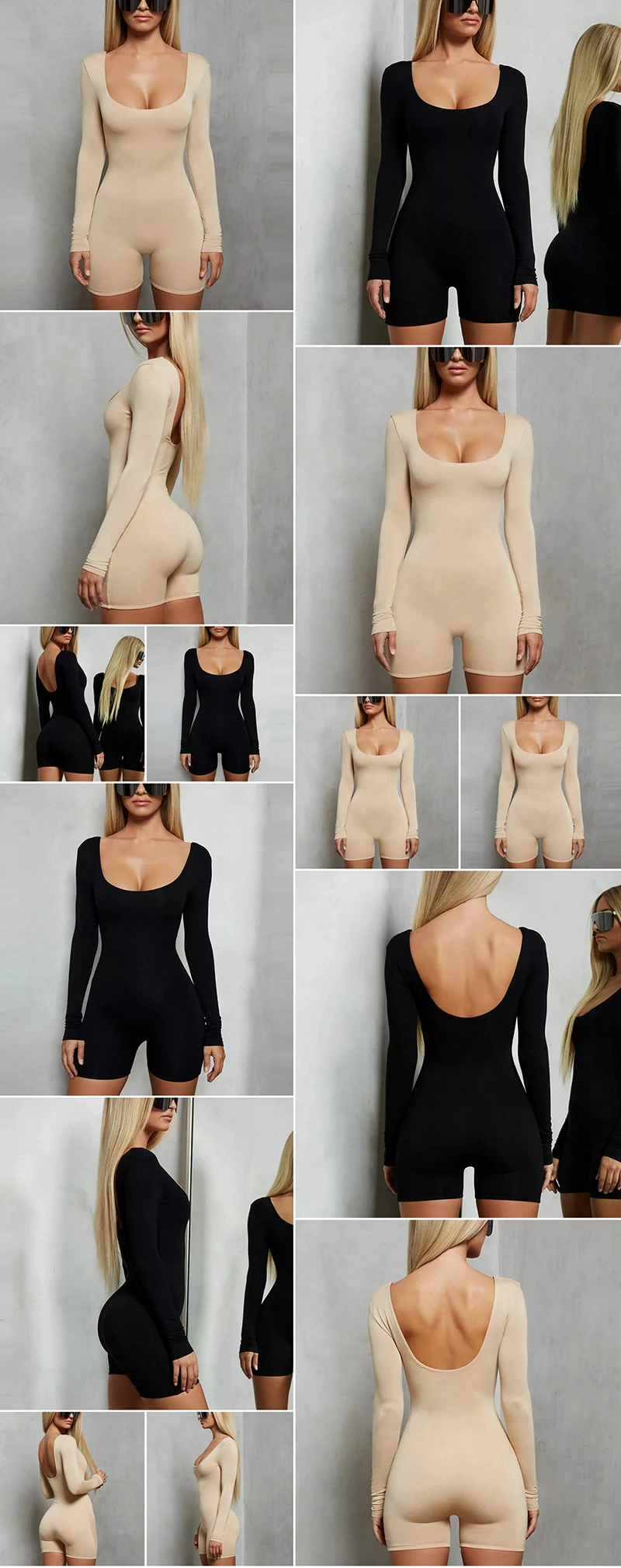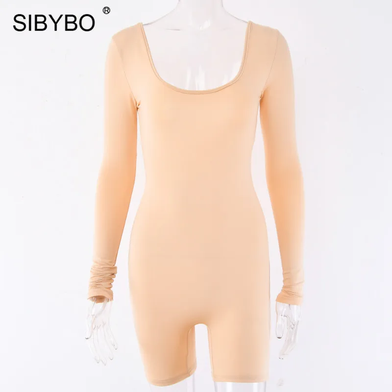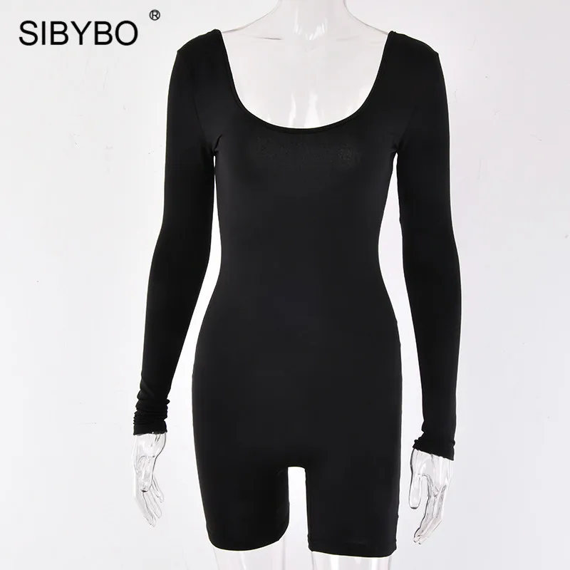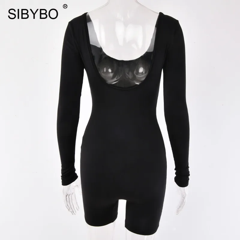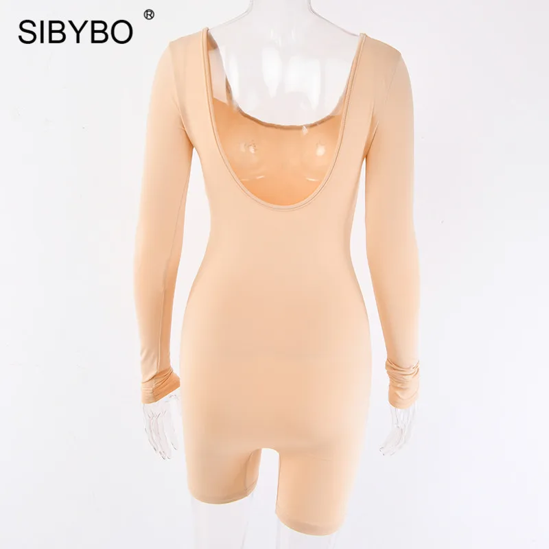 Черта:Sibybo Повседневный женский комбинезон с длинным рукавом и открытой спиной, Осенний обтягивающий сексуальный комбинезон с круглым вырезом, женский комбинезон, Одноцветный женский комбинезон