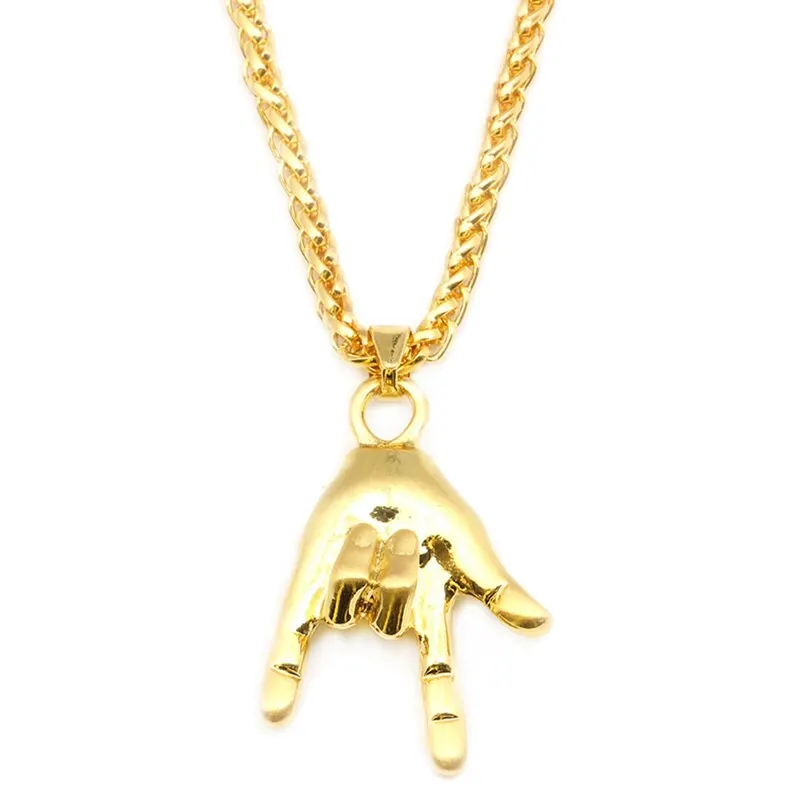 Шеллхард рок рука жесты кулон ожерелье я люблю тебя жесты панк Рок & Ролл Рука цепи ожерелья Мода Хип-хоп ювелирные изделияUS $3,09