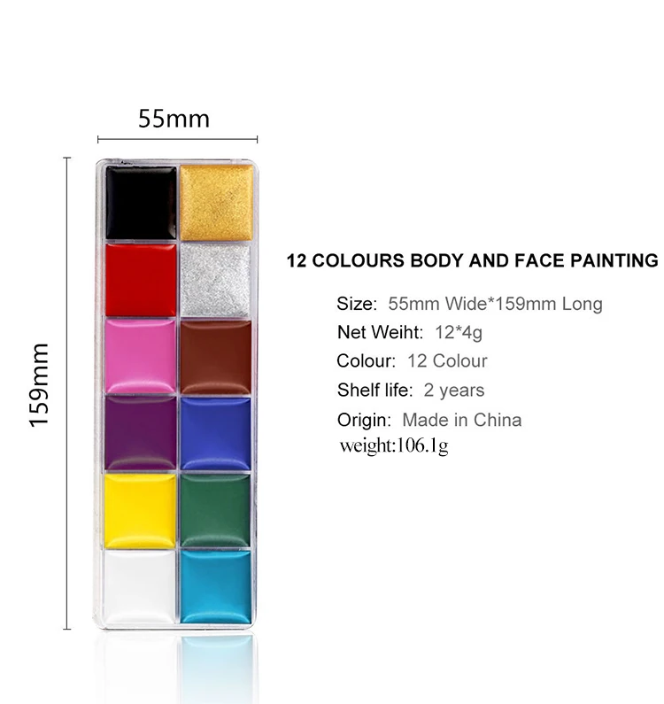 12 видов цветов масляная краска для тела/пигментная краска для макияжа лица, безопасные краски с кистями для Хэллоуина, драма, принадлежности для макияжа