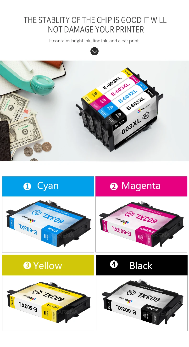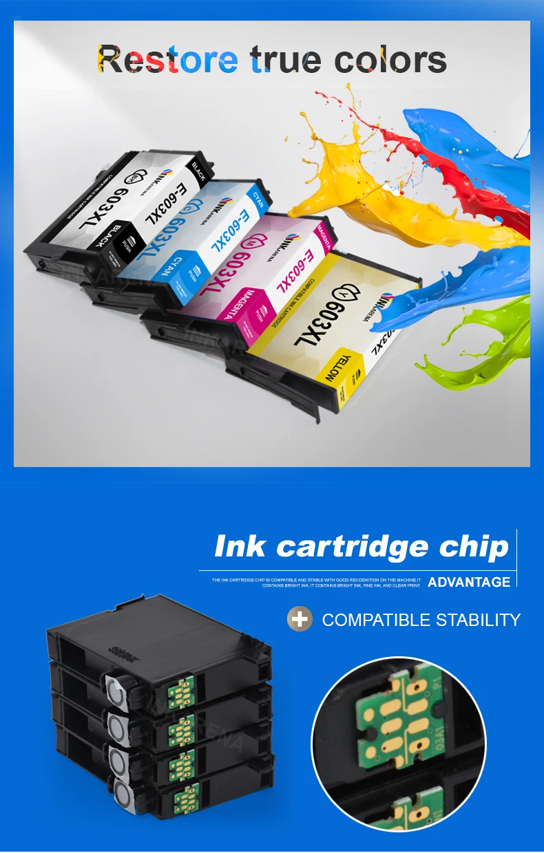 3PCS X для картриджа EpsonT603XLink желтого цвета, полный чернил и чипа