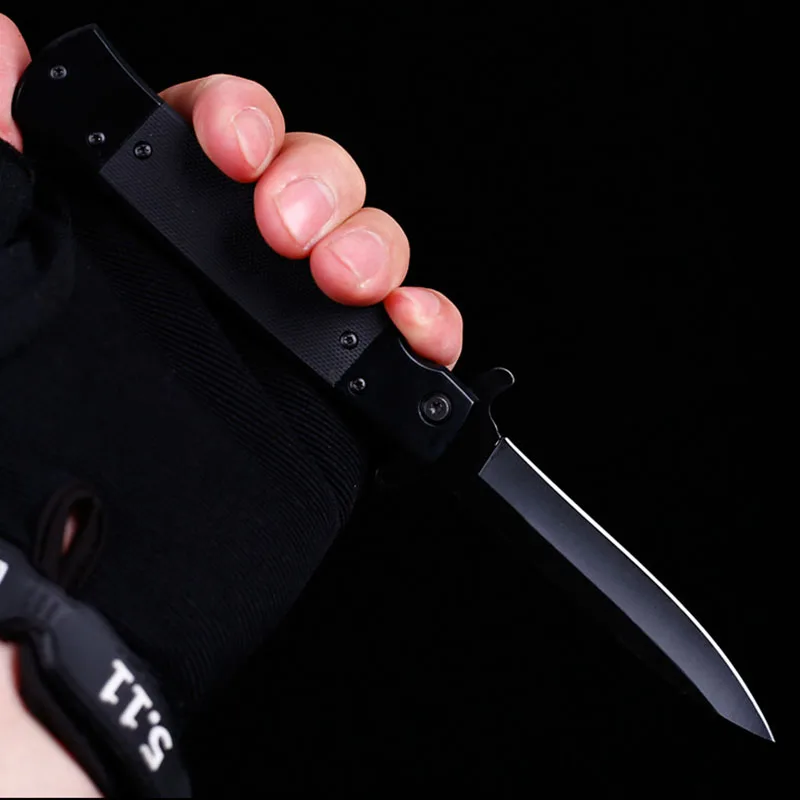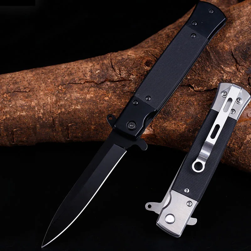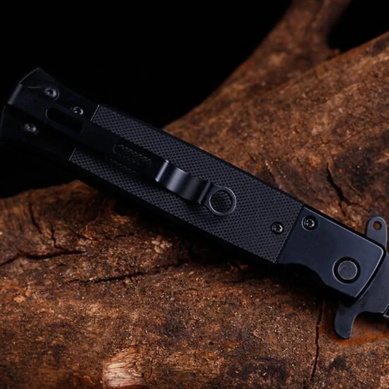 Description: Blade material: 440C Hardness: 58HRC Total lenght: 21.6cm Blade lenght: 9.3cm Handle lenght: 11.8cm Blade thickness: 0.3cm Blade width: 2cm Blade surface: Sanding, Blackening Handle material: G10 Weight: 170g If you need more product information, please contact us.