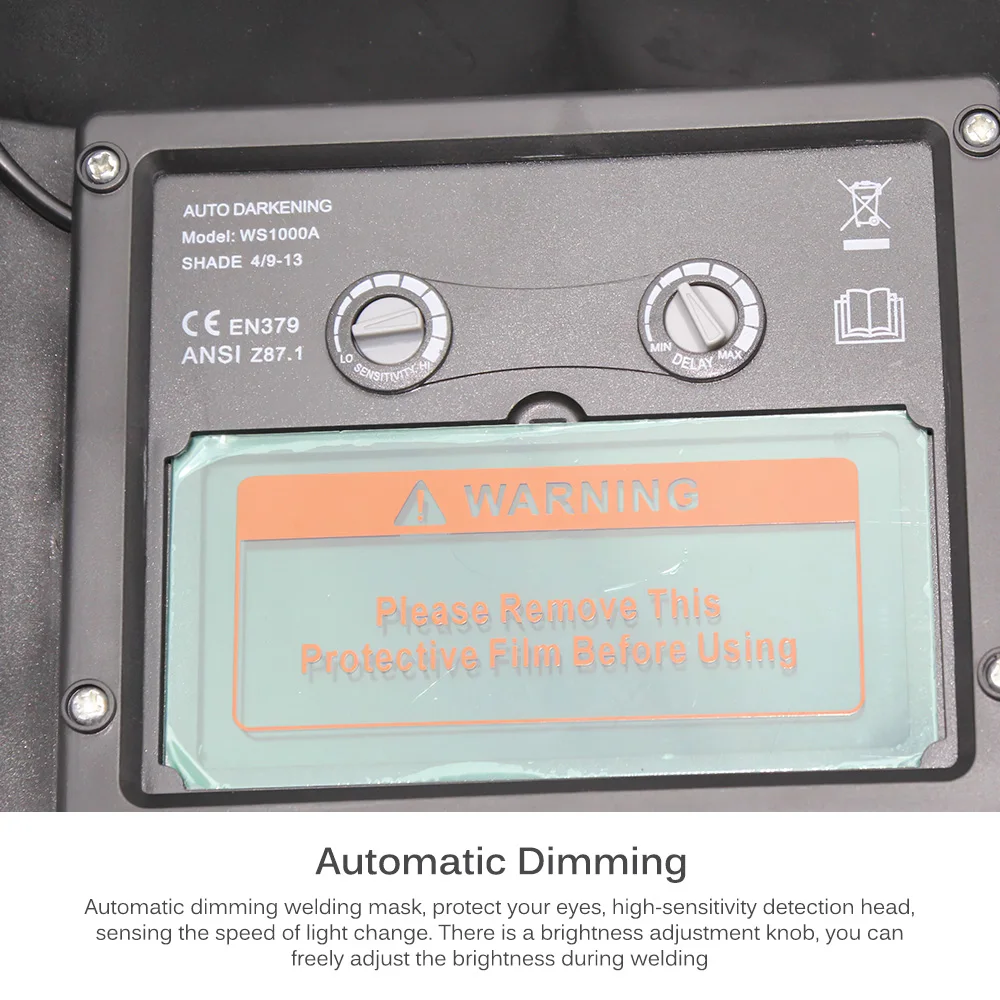 Автоматическое затемнение сварочные маски, защитить ваши глаза, высокая чувствительность обнаружения, обнаружения скорость светильник изменения. Есть регулятор регулировки яркости, вы можете свободно регулировать яркость во время сварки.