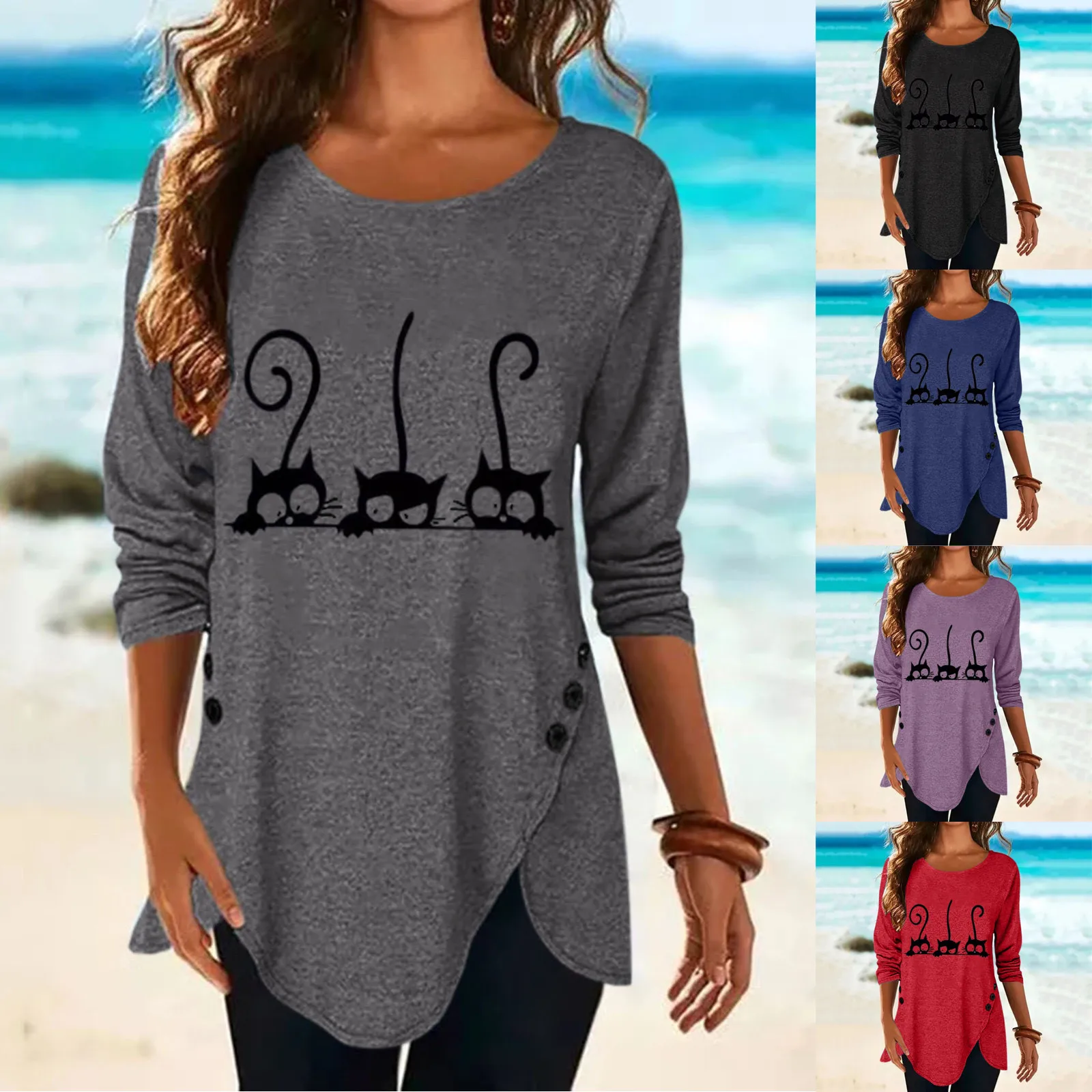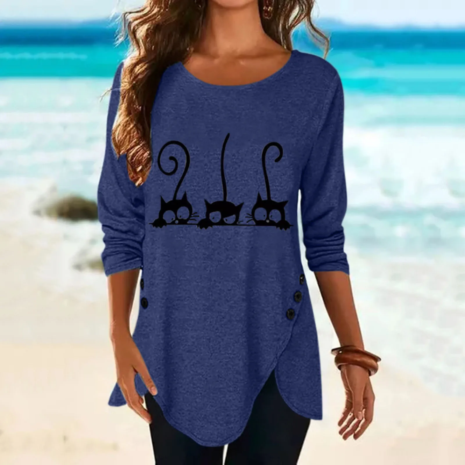 Женская мода Csts Печать Свободный длинный рукав топы Повседневная рубашка
