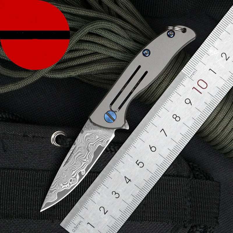 Новое поступление мини складной нож дамасская сталь лезвие TC4 титановый сплав ручка Карманный Походный нож Тактический выживания EDC инструменты