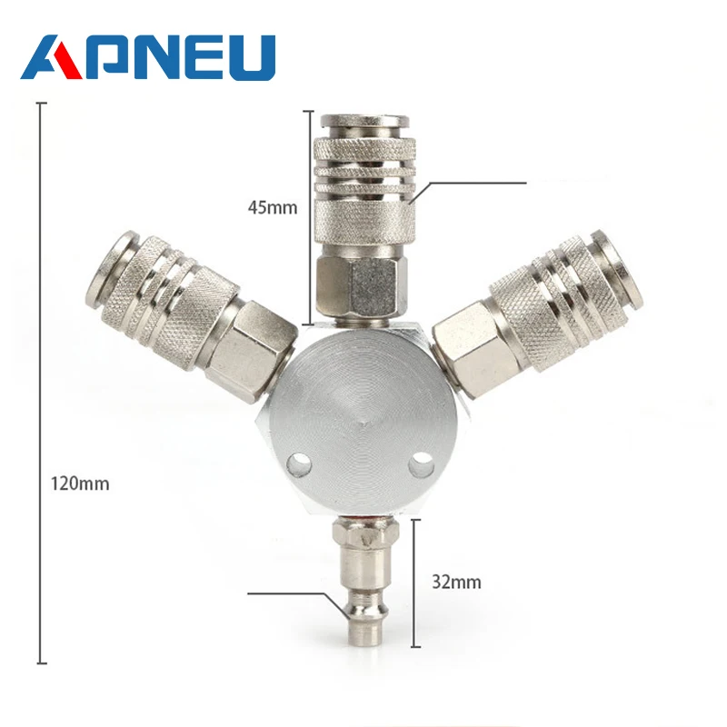1/4''NPT Quick Connector Air Hose Coupling Pneumatic Tools American Style Europe Style 3-Way Manofold Splits Single Airline from the Compresser Into Three Separate Lines Inlet Connects to 1/4 in Industrial (I/M) Couplers Three Outlets Connects to 1/4 in Industrial (I/M) and Automotive(T) Plugs