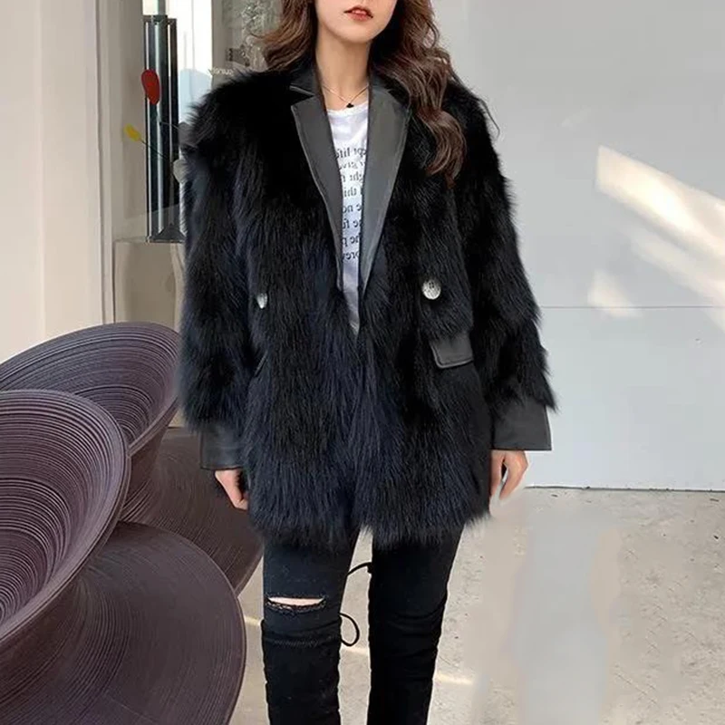 Женское пальто с искусственным мехом зимнее большого размера плюс русская