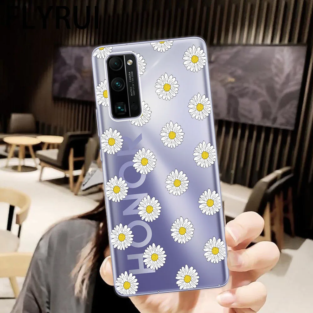 Прозрачный мягкий силиконовый чехол из ТПУ для телефона Huawei Honor 10 20 30 Lite Pro 10i 30i 8C 8X 9X Pro 10X Lite с цветочным узором