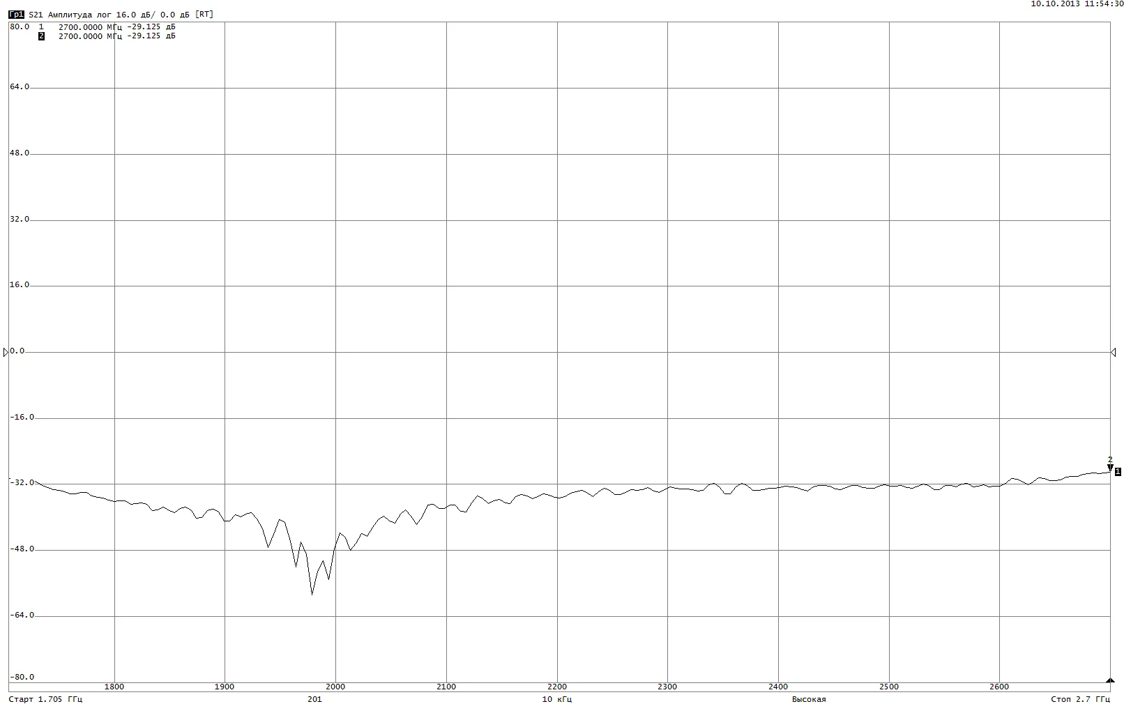Развязка между портами в диапазоне 1700-2700МГц, не менее | 30dB |