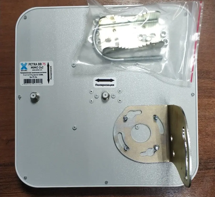 Для антенны PETRA Broad Band 75 MIMO 2x2 рекомендуется использовать кабель с волновым сопротивлением 75 Ом. Антенна снабжена разъемами серии F.