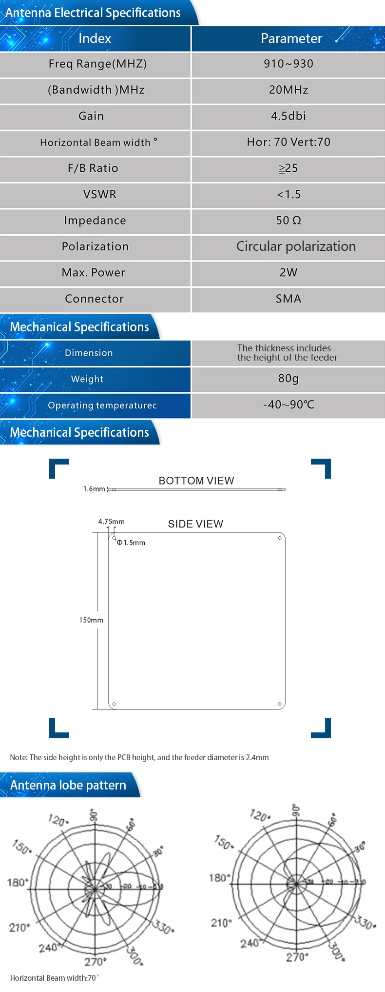 Монтируемая антенна UHF PCB 915M, запущенная технологией Cells-Net, имеет небольшой размер, высокий коэффициент усиления, высокую производительность затрат, высокую направленность, ahd легко устанавливается на внутреннюю поверхность чехол.
