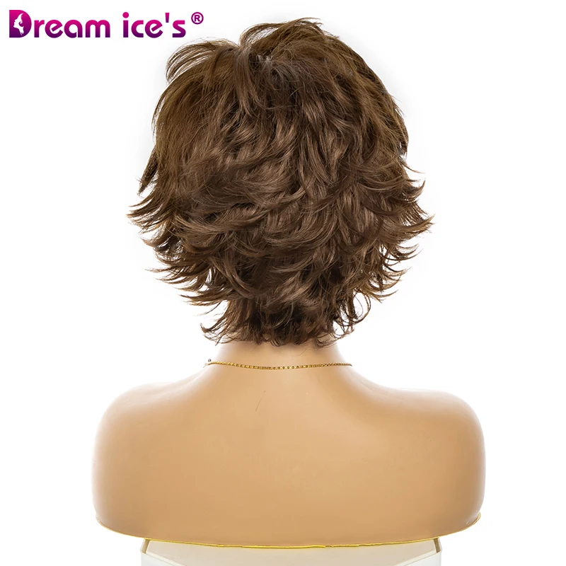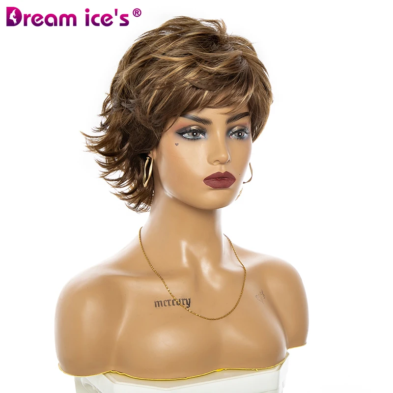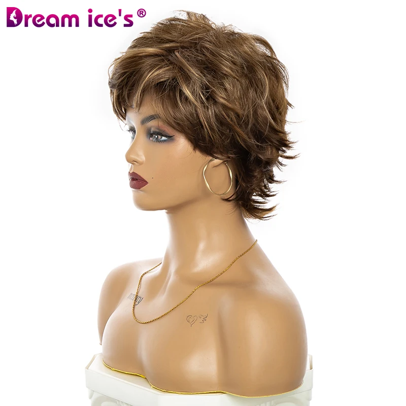 Короткие синтетические волнистые кудрявые парики для женщин, коричневый блонд, яркий натуральный парик с челкой, косплей, повседневный термостойкий сон, лед
