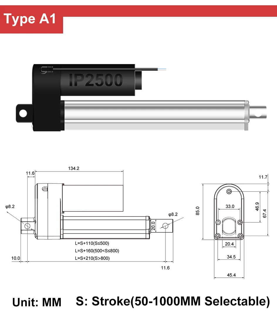 Длина хода: 50 мм-1000 мм