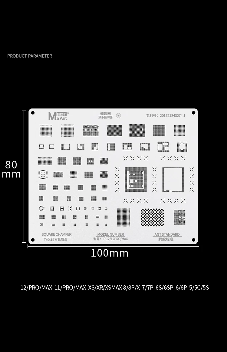 Ma Ant BGA трафарет для IPhone 12 11 Pro Max X XR XSMAX 8 7 6s 6 Plus 5S 5 микросхем CPU NAND Power Tin Plant паяльная сеть