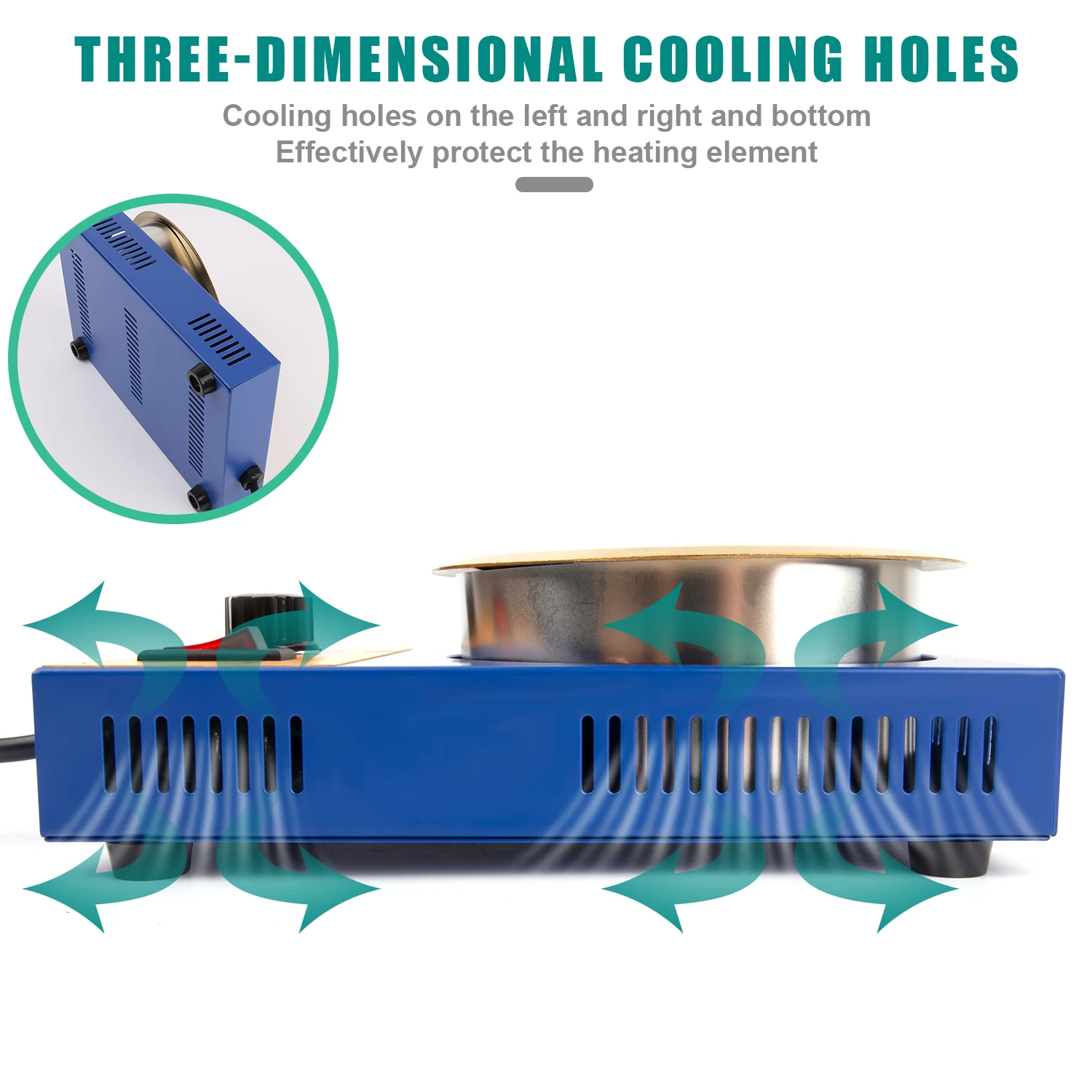 · Входное напряжение: AC110V IAC220V 50 Гц (сообщите нам напряжение перед размещением заказа, мы можем разработать дизайн по запросу). Перед использованием. Убедитесь, что питание должно поставляться с «заземляющим проводом» и работать без этого запрещено. -Отрегулируйте ручку в высоком конце в начале, пока Оловянная расплава не перенесется обратно в оловянную воду. Температура тема не слишком высока, так как требуемый температурный профиль, температура оловянной воды составляет 300-350 ℃ (около 4-9 файлов), в противном случае возрастные люди будут заниматься Оловянным горшком, оловянная вода черная или желтая, Кислый поток, оловянный горшок с ультравысоким температурным эффектом будет быстрее коррозионной перфорации утечки олова. Необходимо выключить питание, прежде чем вы уйдете, чтобы избежать несчастных случаев.