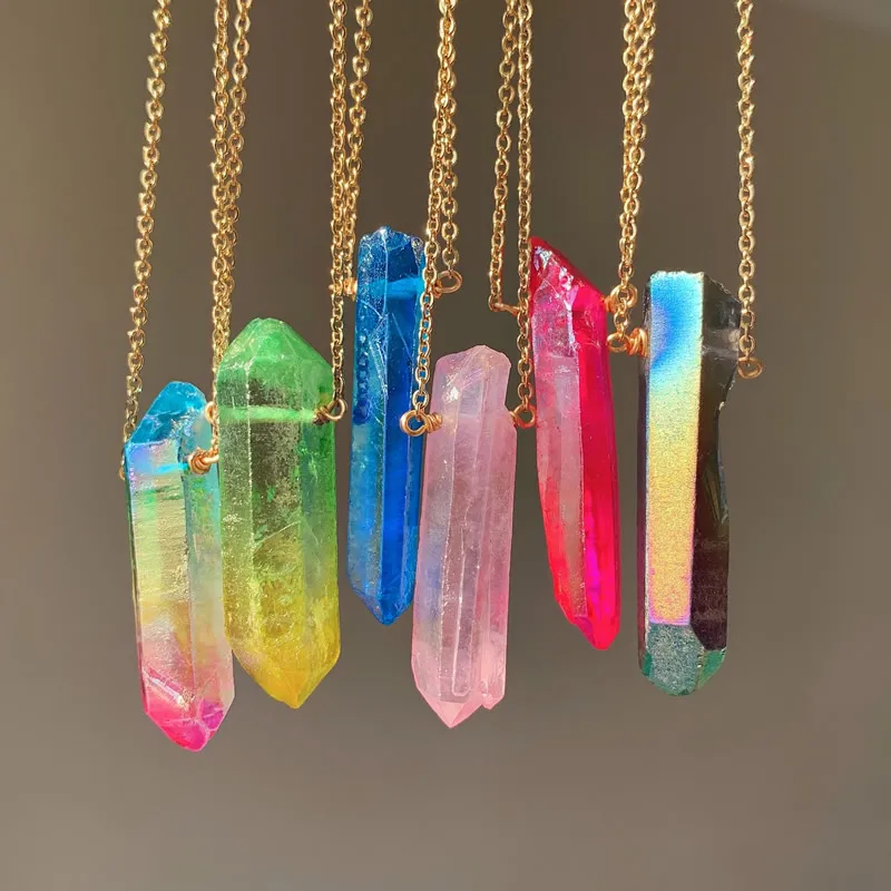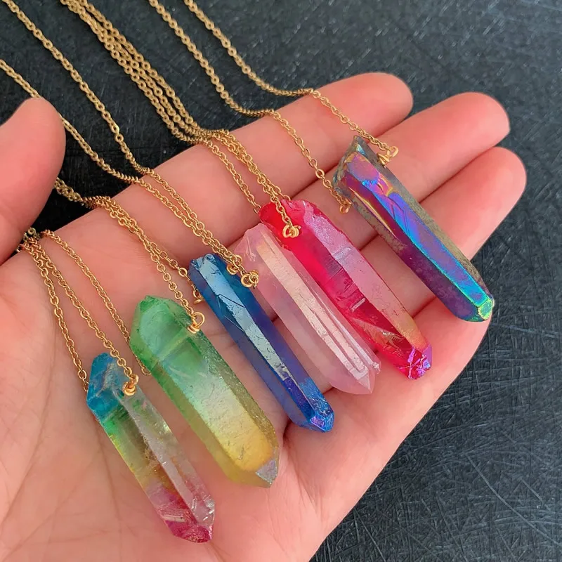Исцеляющая подвеска в виде каменного маятника горного хрусталя ожерелье из нержавеющей стали цепь чокер чакра Радуга точка кулон из природного кварца ожерелье